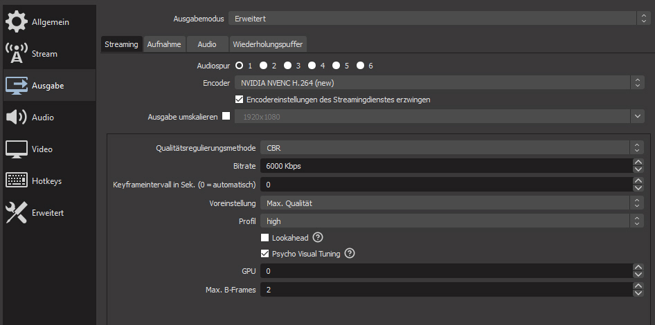 Ingame auch schon mal alles auf low gestellt, trotzdem. Wenn ich den OBS Renderer auf x264 setze, der selbe Fehler. GPU schwankt zwischen 60 und 80%. CPU auch nie über 80%.