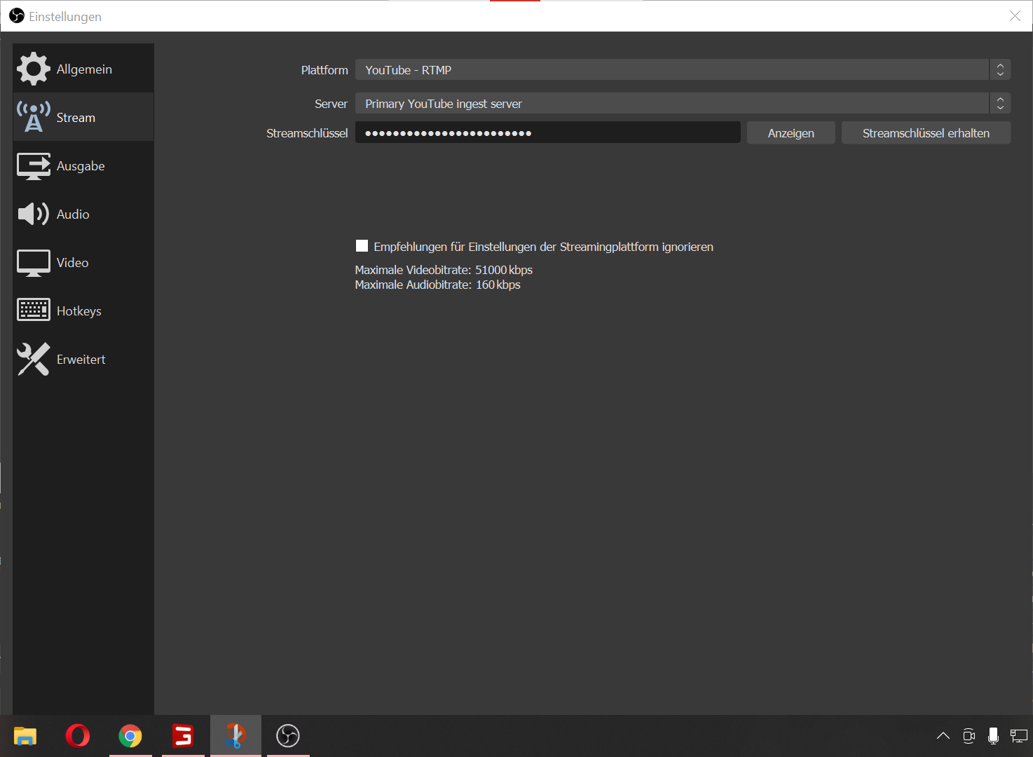 Die aktuelle Bitrate des Audiostreams von 0 liegt unter der empfohlenen Bitrate. Wir empfehlen die Verwendung einer Audiostream-Bitrate von 128 Kbps.