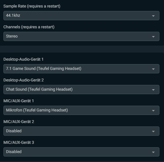 Eyyyyy danke! Wusste nicht, dass man nur separat die Soundspuren hört aber ja Du hast recht! Wenn ich die nun alle auf eine Spur lege, höre ich diese auch... Hatte ich eigentlich vorher auch schon ausprobiert aber ich habe manchmal das Gefühl, dass Streamlabs OBS die Einstellung nicht ganz übernimmt, dass diese erst nach einem Neustart richtig angewendet werden.