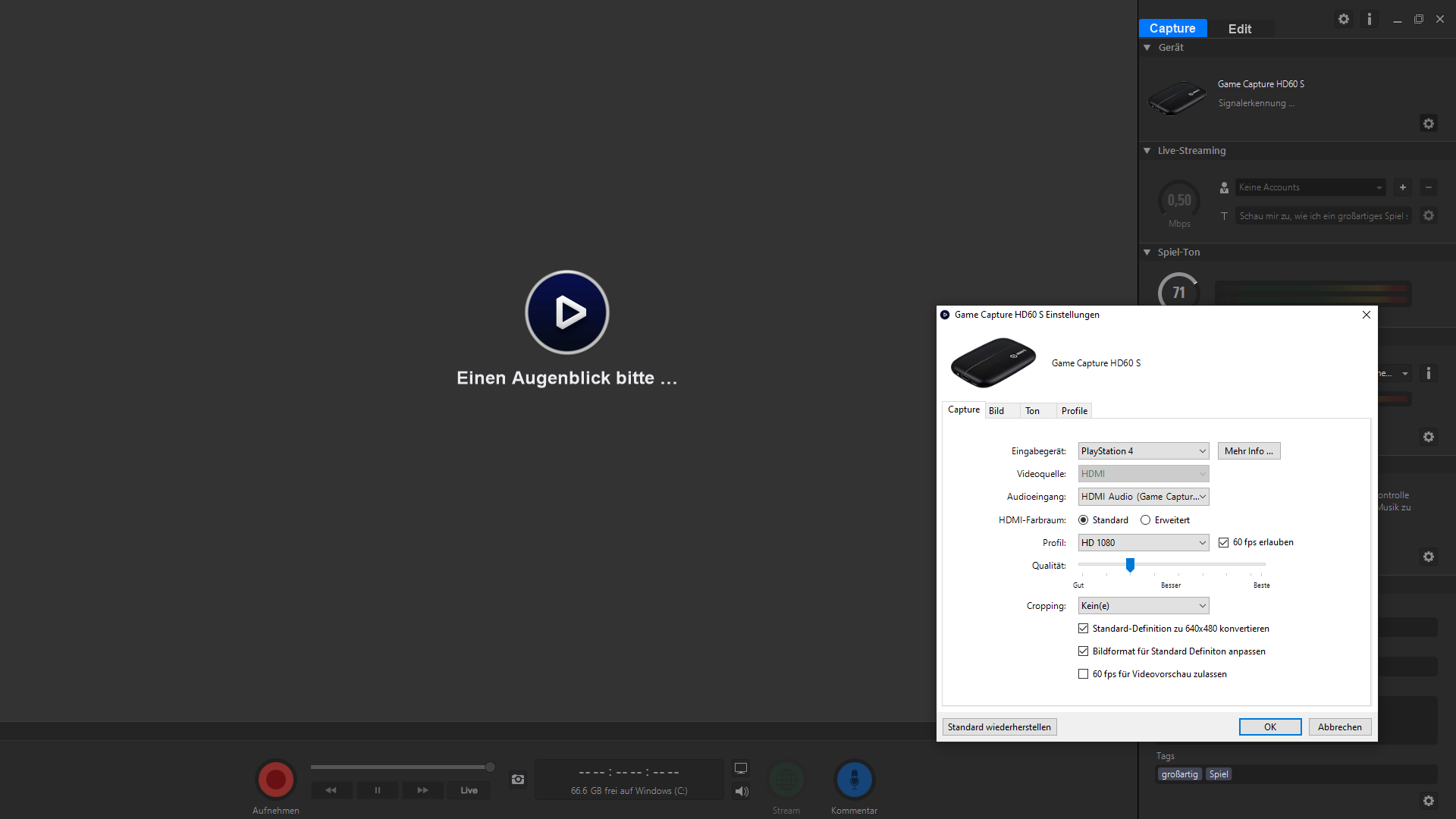So soweit sogut sobald ich die HD60+ angeschlossen hatte und Utility gestartet hatte steht dort Das Gerät wird von einer anderen Software verwendet. Ich hatte bisher nur 1x ein Bild und dies wirkte schon wie ein Screenshoot da sich nix tat.