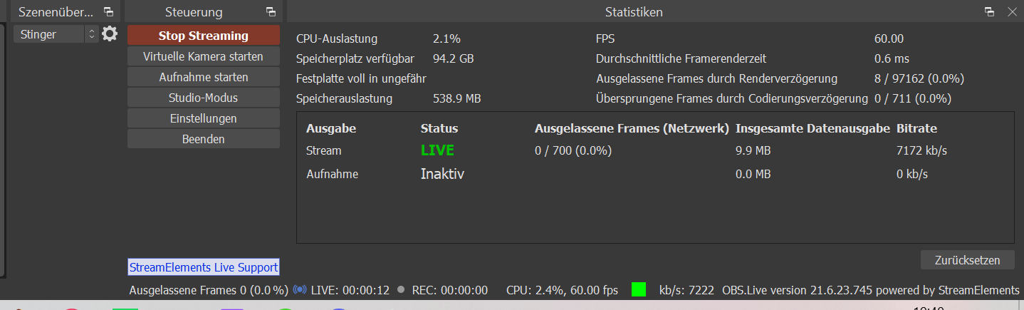 Moin, ich habe folgendes Problem ich starte den stream und innerhalb einer stunde ist meine Festplatte voll obwohl ich nicht mal aufnehme sondern einfach nur stream. Des weiteren wollte ich mal fragen ob noch jemand eine idee hat was ich an meinen stream Einstellungen ändern kann. Damit es flüssiger läuft oder ausschaut.