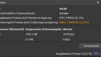 und noch eine andere Frage ich weiß nicht ob sich da jemand auskennt aber bei mir kommt es öfters vor das mein stream einfach abartig lagt und das wegen den Übersprungene Frames durch Codierungsverzögerung woran das liegt das man das vielleicht nicht beheben kann.