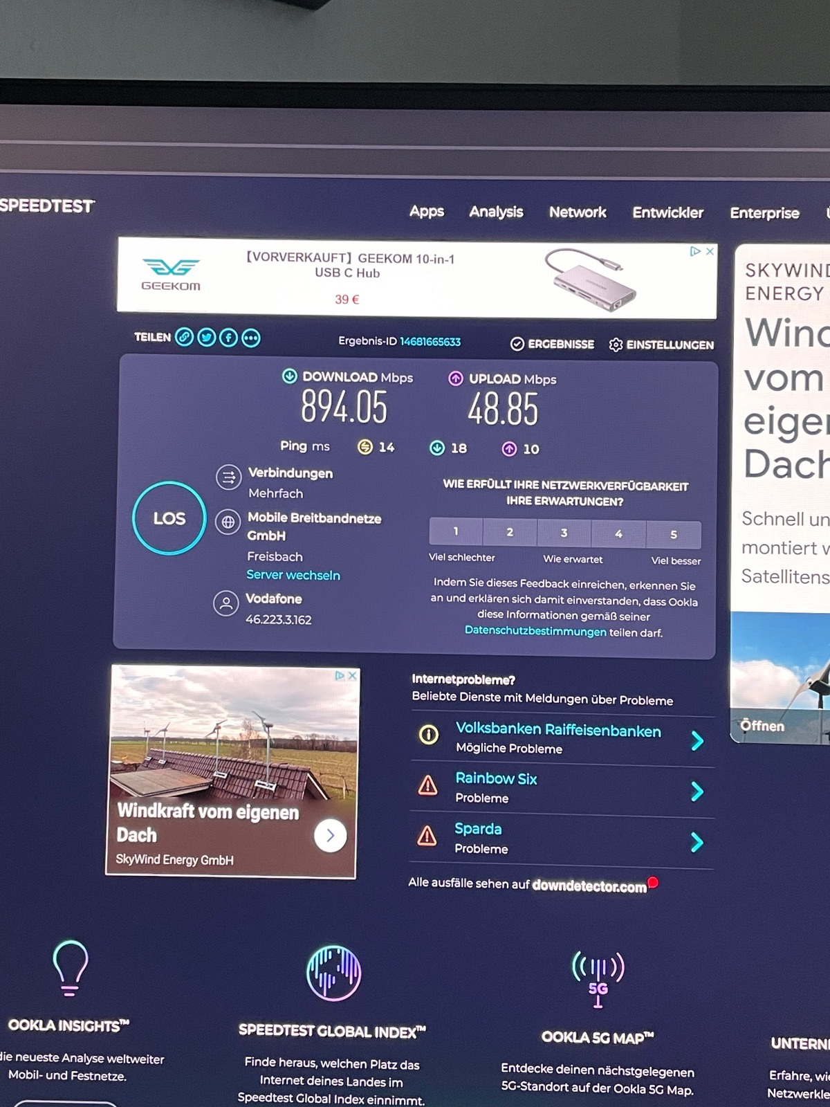 Nach zig Speedtests auf verschiedensten Seiten habe ich immer ungefähr folgende Werte:
