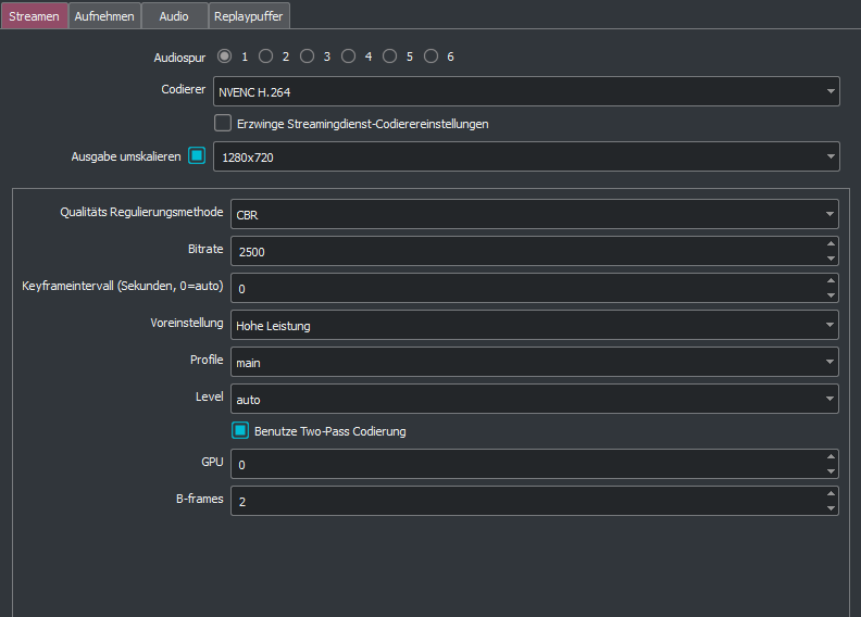War auch eher mal so ein Test mit Graka zu streamen ansonsten mach ich auch mit x264, hat aber auch nicht funktioniert.