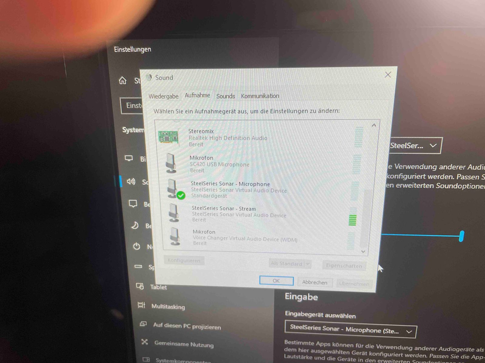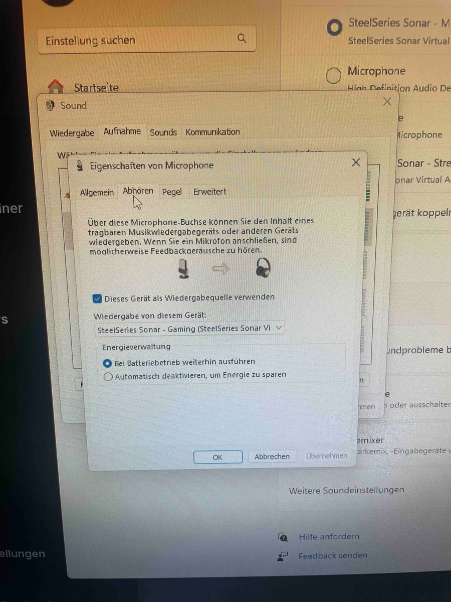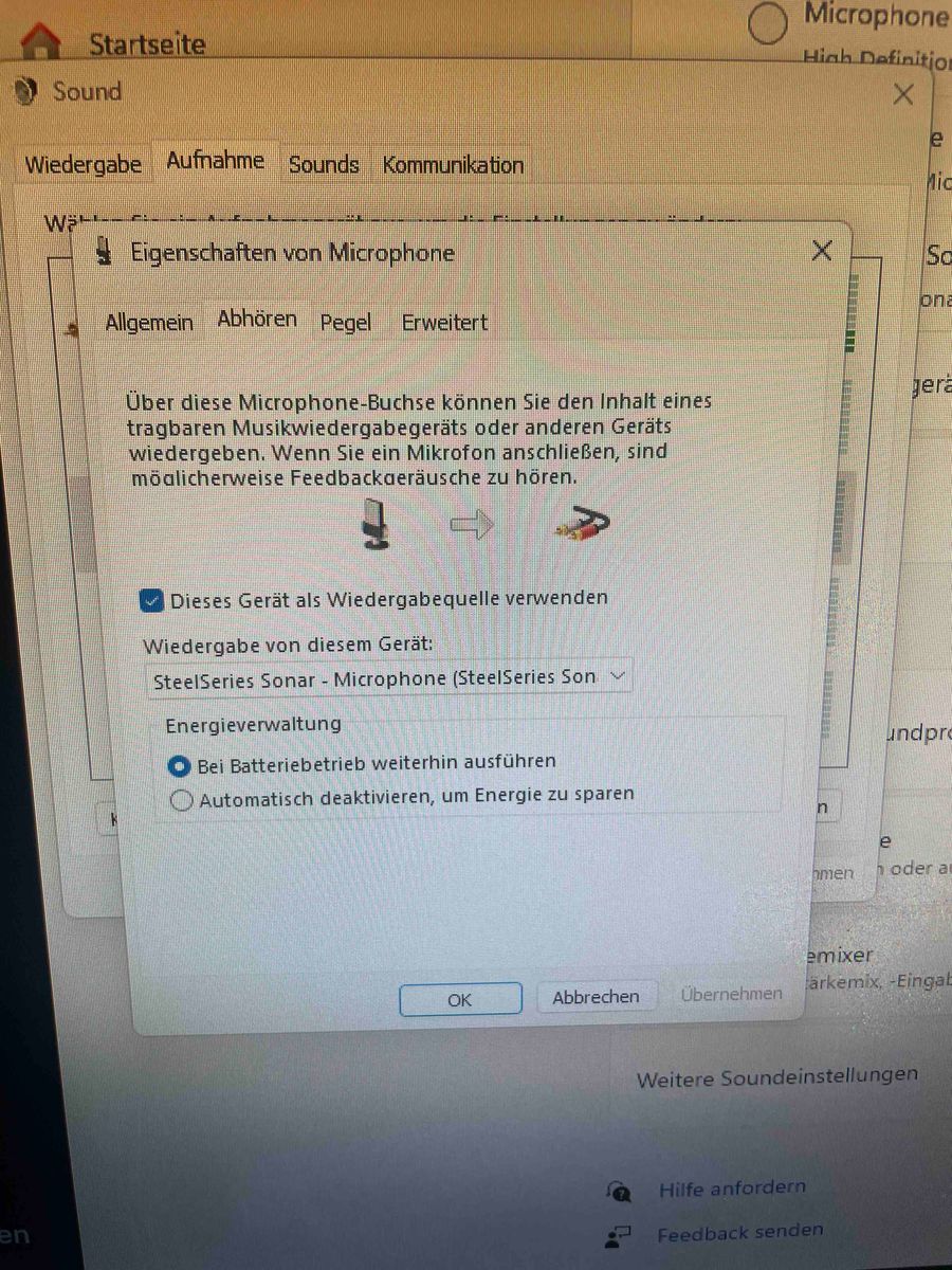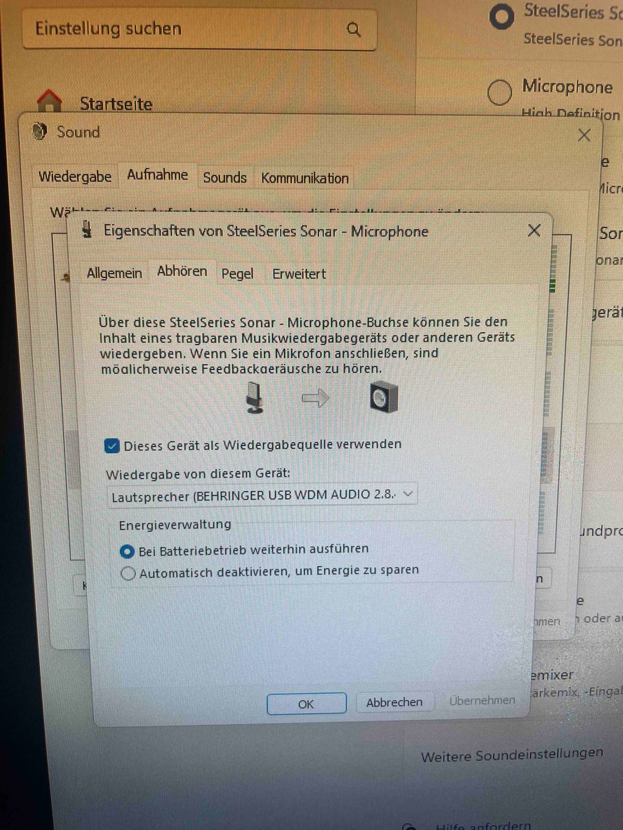 Komme einfach mit den Soundeinstellungen in Windows Null klar. Aufnahme Gerät als Wiedergabegerät und Bliblablubb das eine als Standardgerät das andere nicht,Puh.
