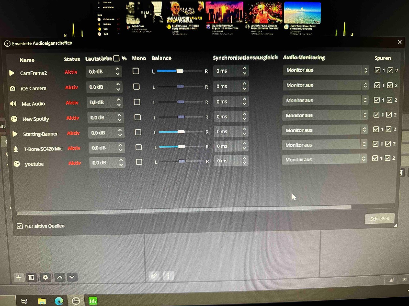 Die kompletten Mac Mini Audiosignale kommen in OBS an und laufen bombastisch im Stream.