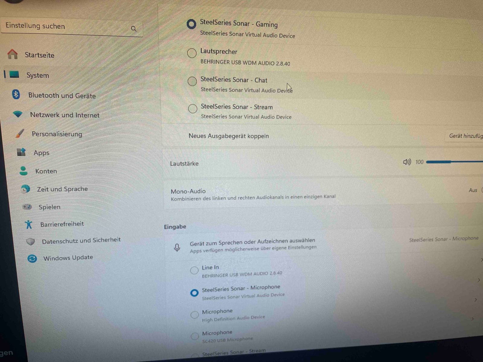 Aber "SteelSeries Sonar" soll ja soweit alles automatisch einstellen, aber anscheinend hapert es bei der Einstellung des "T-Bone Mic`s".
