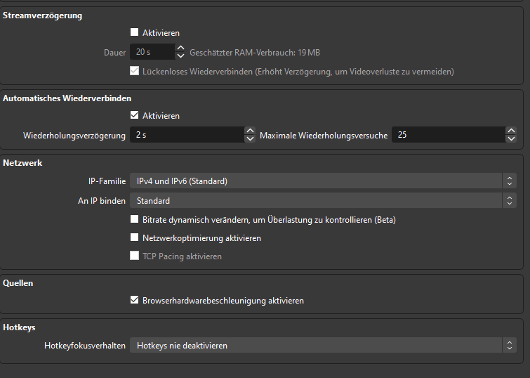 Wie heißt denn das Plugin? Monitor, Spiel, OBS alles hat bei mir 1920x1080. Höher gehe ich bis heute nirgendwo brauch ich auch nicht. Aber grad in GTA weiß ich das sogut wie jeder das Spiel und auch seinen Monitor auf 1920x1080 hat. Aber auch Leute die Ihren Monitor auf 4k Laufen lassen sagen das mein Stream Pixelbrei des grauens ist. Daran liegt es also nicht falls du darauf hinaus wolltest. Die Auflösung mit Geviertelt und voll habe ich schon öfter verstellt. Habe sogut wie an allen Einstellungen unter Stream und Ausgabe rumgedocktort