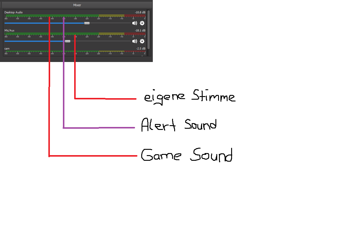 Kommt alles insgesamt auch auf die ursprüngliche Lautstärke des Tons an. Guck einfach, dass es nicht übersteuert, also die Tonspur nicht in den roten Bereich geht und gut ist. Wenn du viele Alerts bekommst, kann es auch helfen, in den unteren orangenen Bereich zu gehen, damit es nicht zu störend ist